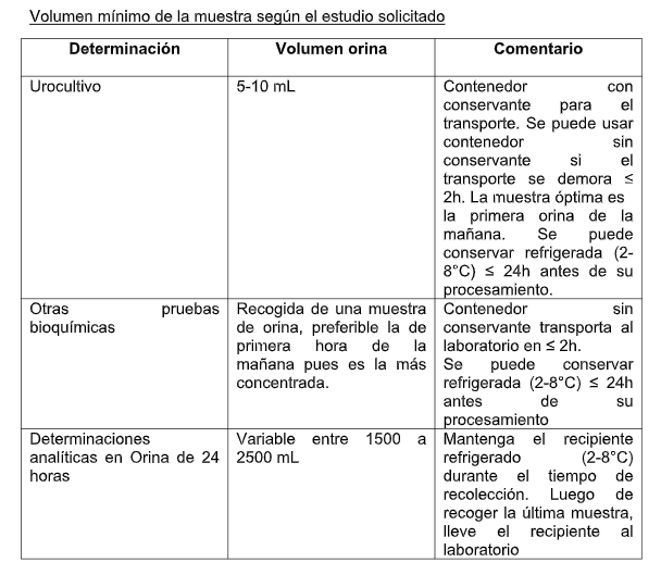 micción media en un contenedor estéril. Deben emplearse contenedores de boca